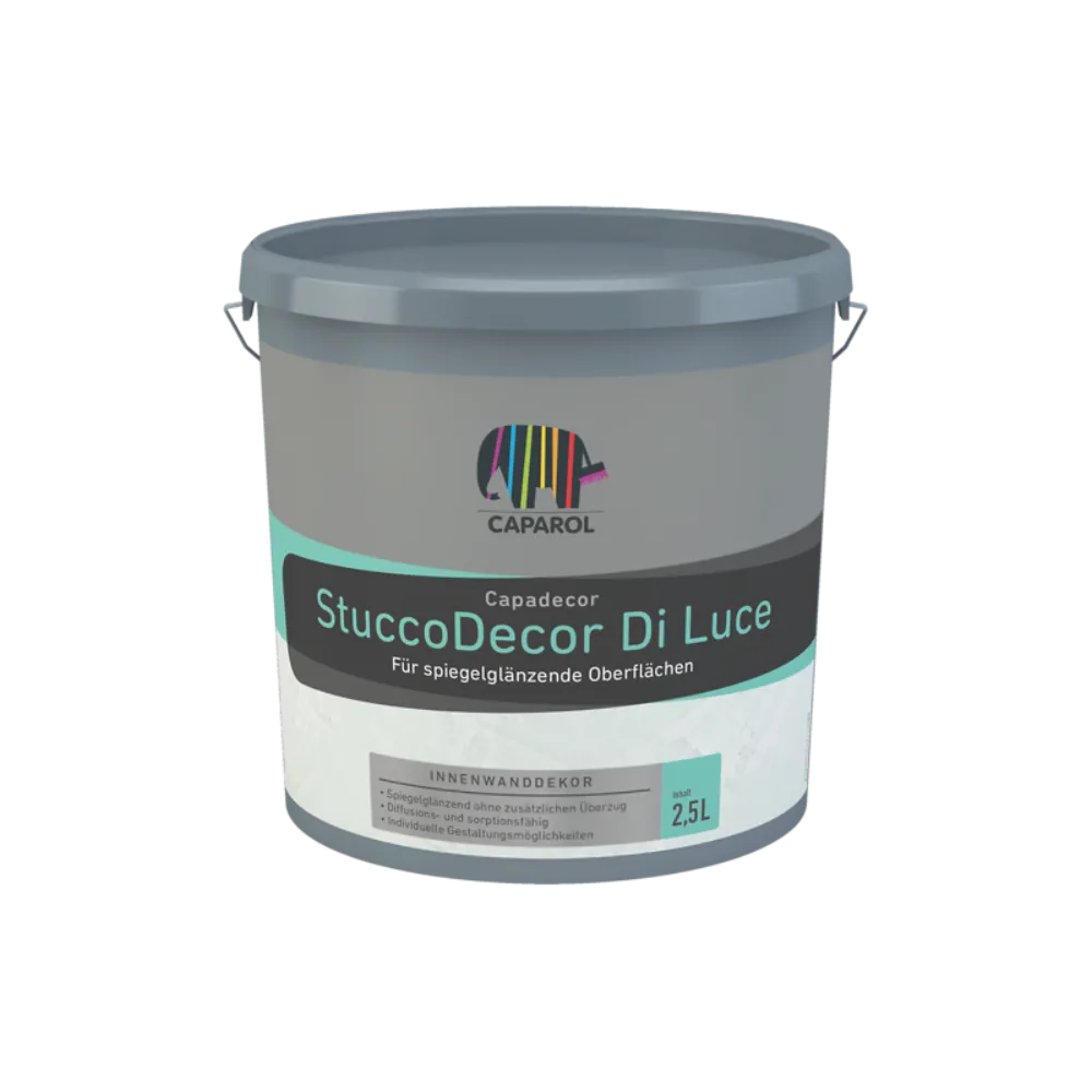 | Degré de brillance | Blanc semi-transparent. Disponible dans environ 1300 teintes selon notre nuancier 3D avec le système ColorExpress® dont 50 teintes sont présentées dans le nuancier spécifique StuccoDecor DI LUCE. Pouréviter des nuances toujours possibles entre mélanges su |