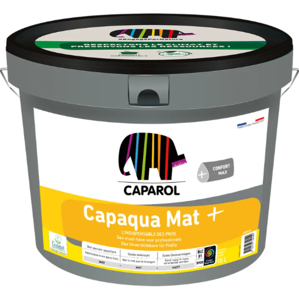 Capaqua Mat + est utilisable en intérieur pour la mise en peinture ou la rénovation de murs et plafonds. Dotée d'un bon pouvoir opacifiant dès la première couche, elle est idéale pour une application en pièces sèches, elle offre également un temps d'ouverture optimal facilitant au maximum son confort d'application et limitant efficacement la présence de traces de reprises.