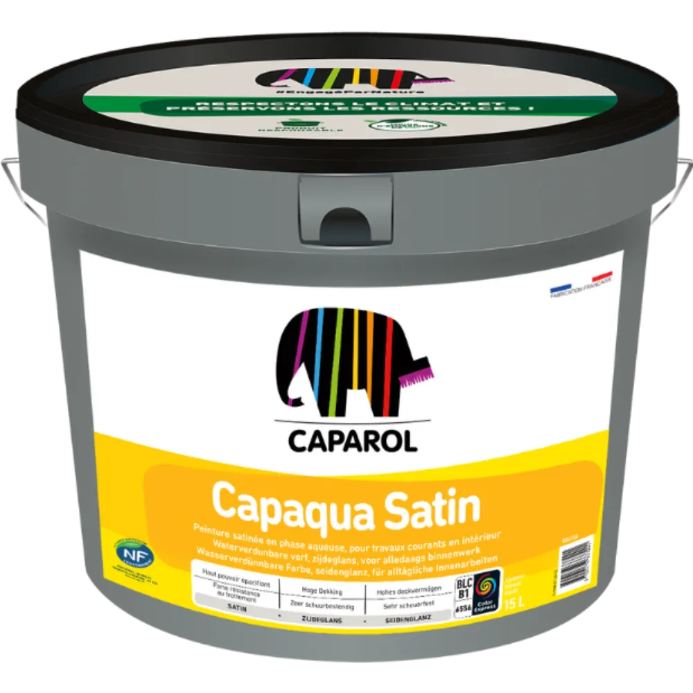 Capaqua Satin est une peinture satinée de finition courante, utilisable en intérieur, pour la mise en peinture ou la rénovation des surfaces murales. Dotée d'une grande résistance aux frottements et d'un bon pouvoir opacifiant, Capaqua Satin est idéale pour toutes pièces (sèche ou humide) devant être remises en service rapidement.