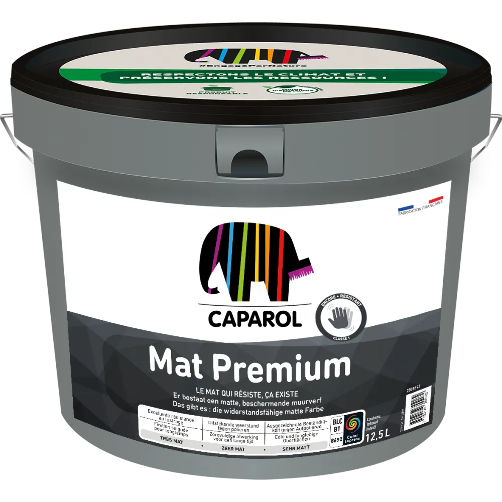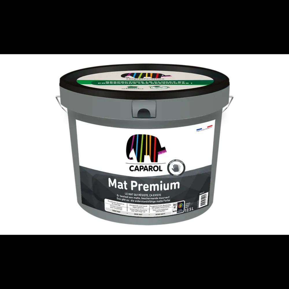 Peinture intérieure très mate, fortement résistante au lustrage, aux chocs et rayures. Utilisable en intérieur pour obtenir une décoration murale de haute qualité. Son excellente résistance au lustrage, aux frottements et à la rayure, aussi bien en teintes claires qu'en teintes foncées, permet de l'appliquer dans des pièces aux fortes sollicitations. Spécialement formulée pour obtenir un aspect très mat, Mat Premium est idéal pour répondre aux exigences des peintres, décorateurs et architectes à la recherche d'une finition très soignée, haut de gamme et durable.